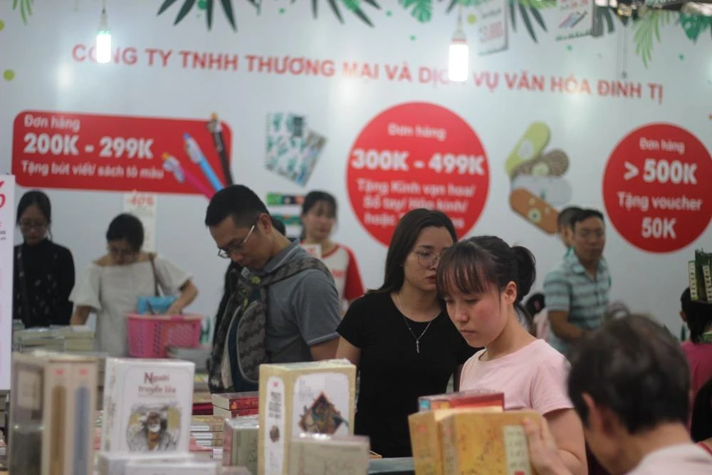 Nắng nóng nhưng dòng người mua sách vẫn đông.