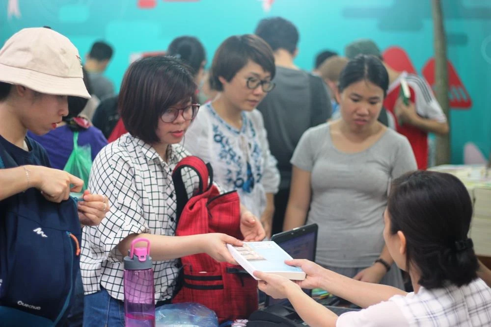 Nhiệt độ lên cao, Hà Nội đang bước vào đợt nóng nắng nhất, nhưng vẫn không ngăn được dòng người đổ về Công viên Thống Nhất, nơi đang diễn ra Ngày sách Việt Nam 2019.