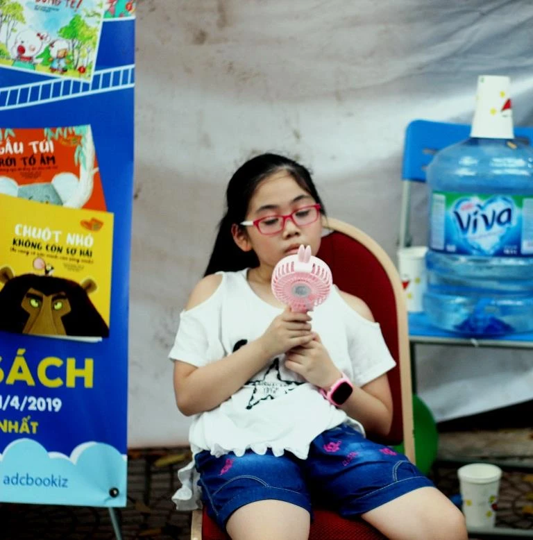 Trẻ em đến với Hội sách cũng phải đem theo những chiếc quạt mi ni.