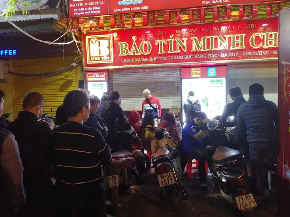 Do lượng khách mua rất đông, phía Bảo Tín Minh Châu thông báo tạm không mua vào vàng với số lượng nhỏ, chỉ giao dịch từ 50 chỉ trở lên, nhưng khách hàng phải nhận tiền vào hôm sau. Cửa hàng này cũng bố trí nhân viên cung cấp nước uống và đồ ăn vặt cho khách hàng.