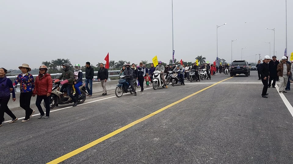 Người dân náo nức đi bộ, đi xe trên cầu khi thông cầu