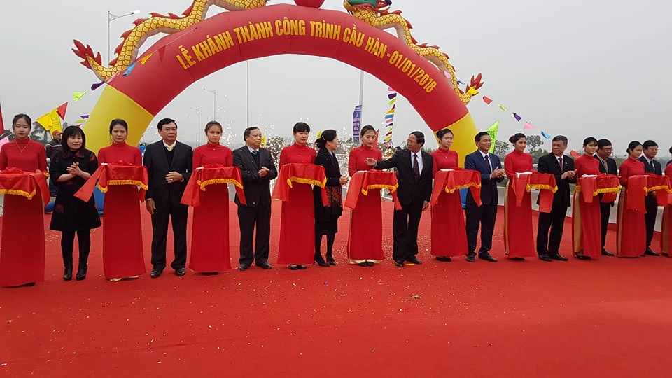 Lãnh đạo TP Hải Phòng cắt băng khánh thành cầu Hàn sáng 1-1-2018