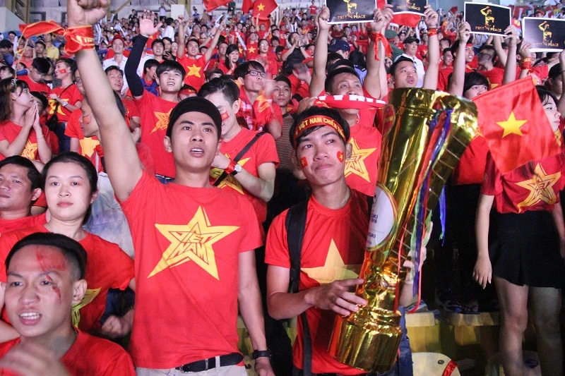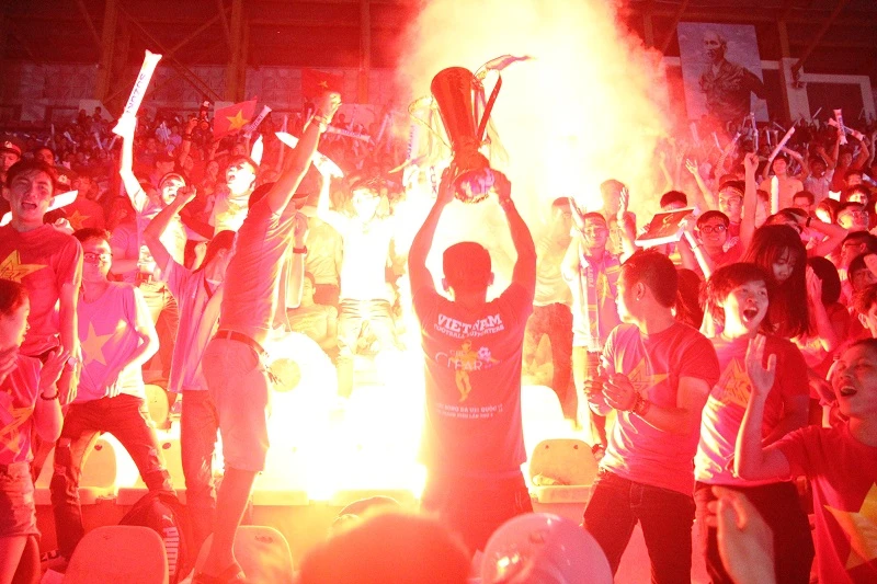 Màn đốt pháo sáng ăn mừng khi VN vươn lên dẫn 2-1.