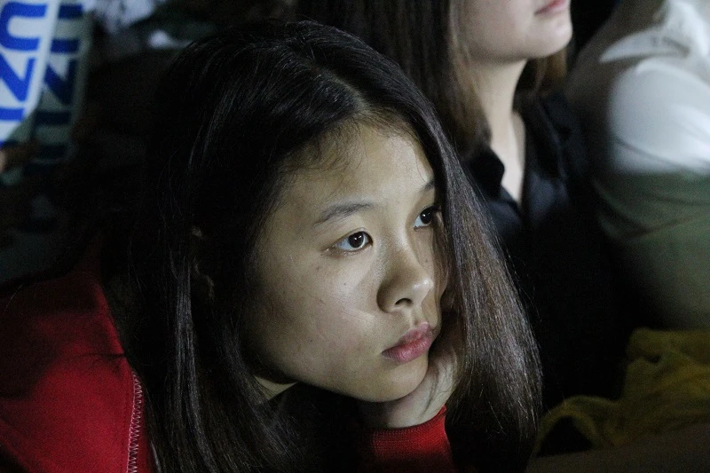 Gương mặt thất thần của nữ CĐV trên khán đài.