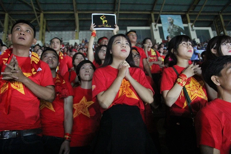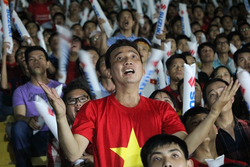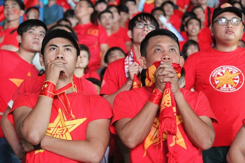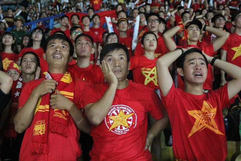 Khi bị dẫn trước 1-0, các CĐV vẫn nuôi hy vọng đội tuyển VN có thể lội ngược dòng trong những phút cuối.