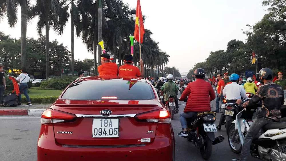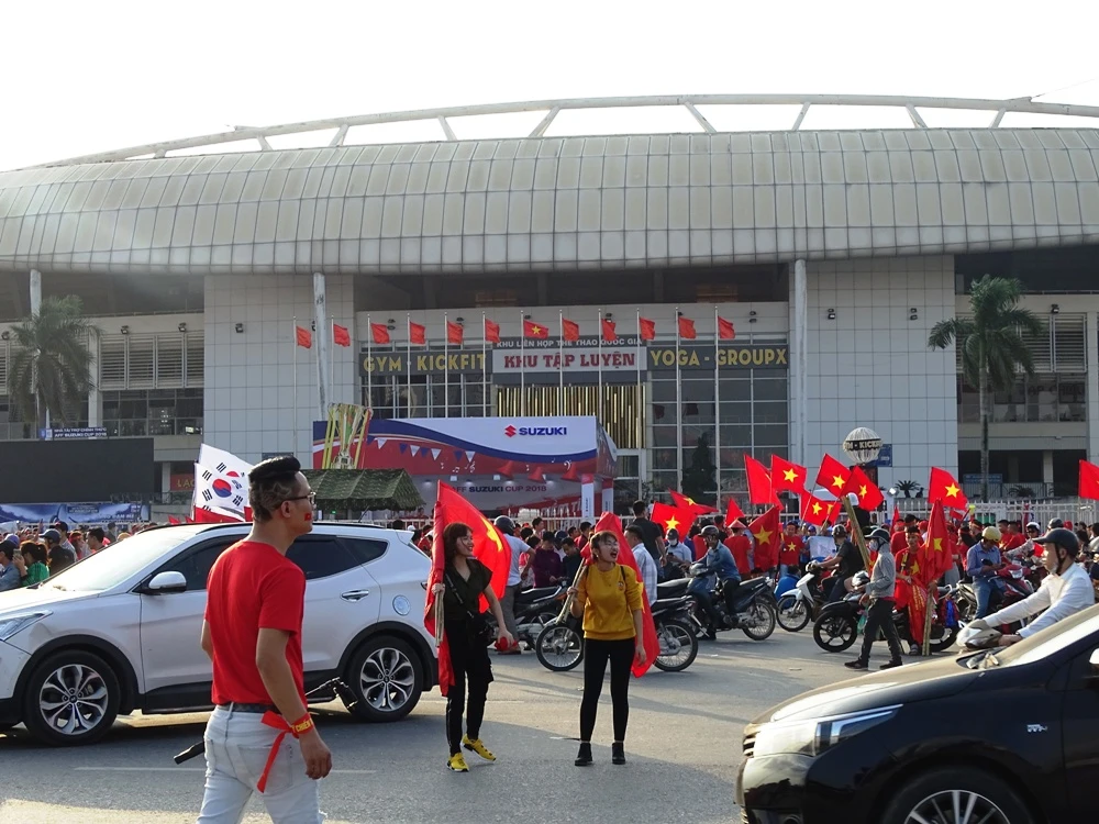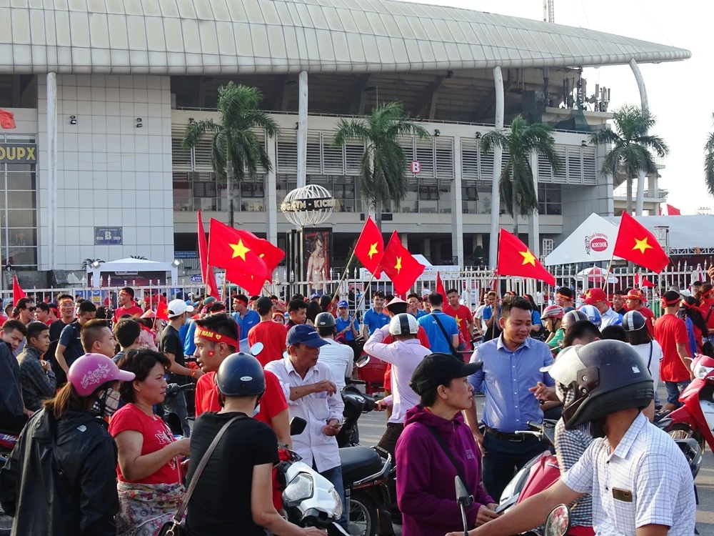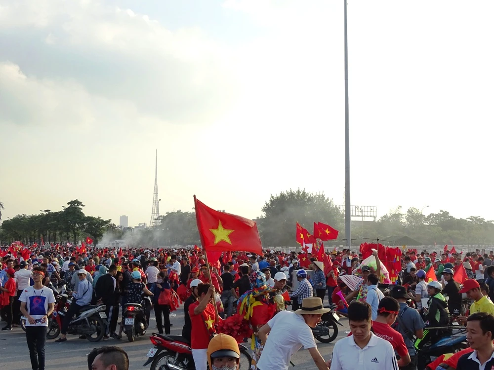 Mặc dù còn khoảng hai giờ nữa trận đấu giữa đội tuyển Philippines và Việt Nam mới bắt đầu nhưng ngay bây giờ khu vực xung quanh sân Mỹ Đình đã chật cứng người hâm mộ.