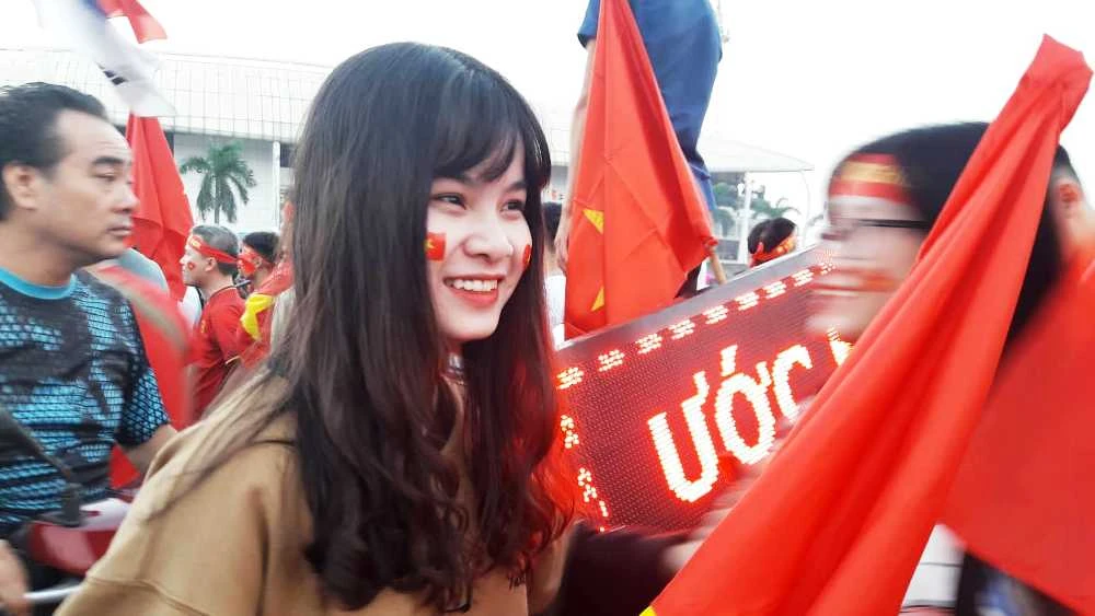 Tất cả cùng hướng tới chiến thắng của đội tuyển Việt Nam. Ảnh: VIẾT THỊNH