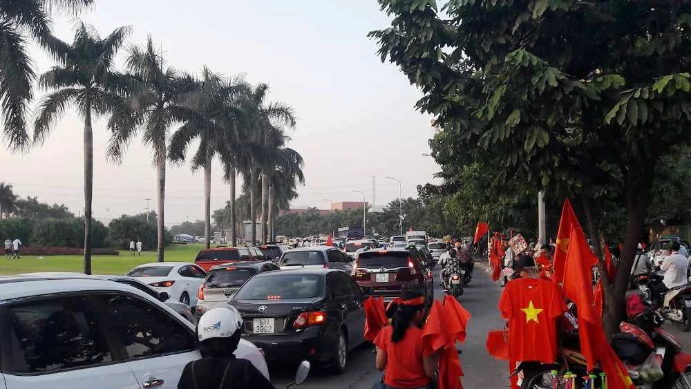 Nhiều ngả đường đổ về Mỹ Đình đã tắc nghẽn.