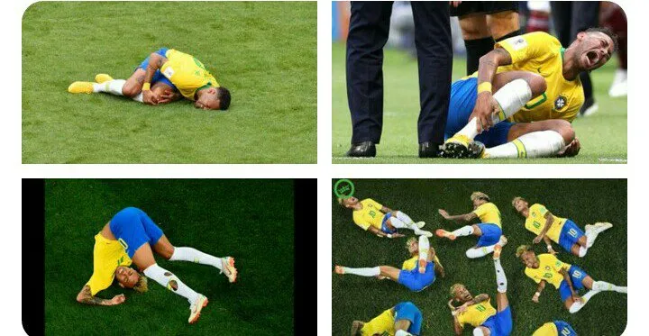 Cụ thể, trong trận Brazil thắng Mexico 2-0, Neymar đã có nhiều pha té ngã nằm vật vã đau đớn trên sân khi mà tác động của cầu thủ đối phương chưa nặng đến mức anh phải làm vậy. Thống kê cho thấy từ đầu vòng chung kết World Cup 2018 đến trước trận tứ kết, Neymar đã có đến 14 phút nằm lăn lộn trên sân.