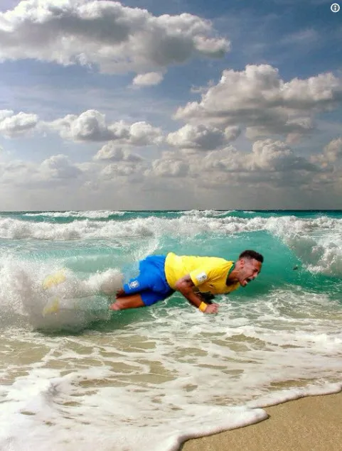 Tài khoản @insoniascarvao thì chế bức ảnh Neymar giống như một quả tên lửa đang… lướt cùng con sóng với lời rao: “Kỳ nghỉ tốt đẹp nhé Neymar, hãy cẩn thận với dòng nước lạnh”.