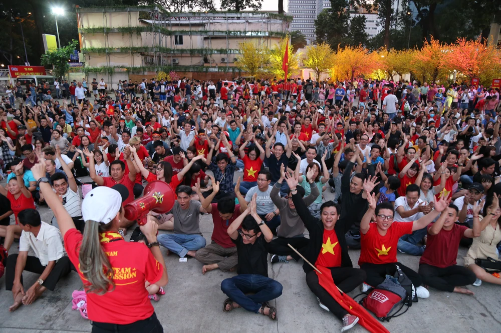 Những phút đầu tiên của trận đấu đã bắt đầu, dưới đây là một số hình ảnh CĐV tại TP.HCM tiếp lửa cho đội tuyển: