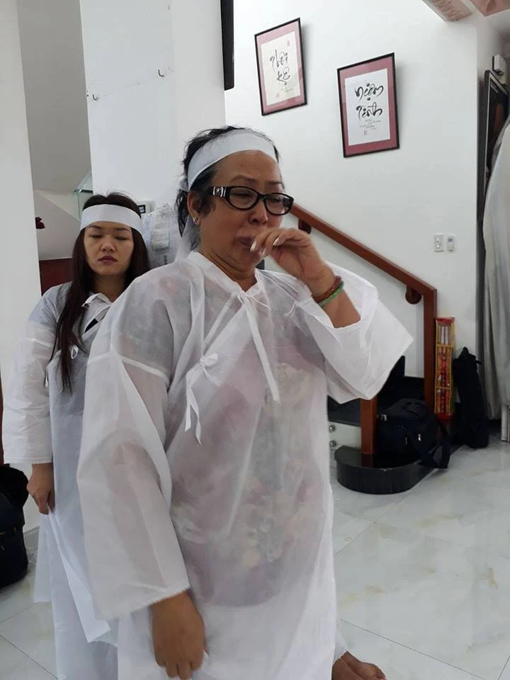 7 giờ 30 ngày 21-4 bắt đầu nghi thức liệm, mọi việc trong nhà đã được chuẩn bị xong xuôi. Đến quá trưa, người nhà nghệ sĩ vẫn lui cui thắt từng mảnh khăn tang cho những cây to tới chậu cảnh nhỏ trong vườn nhà.