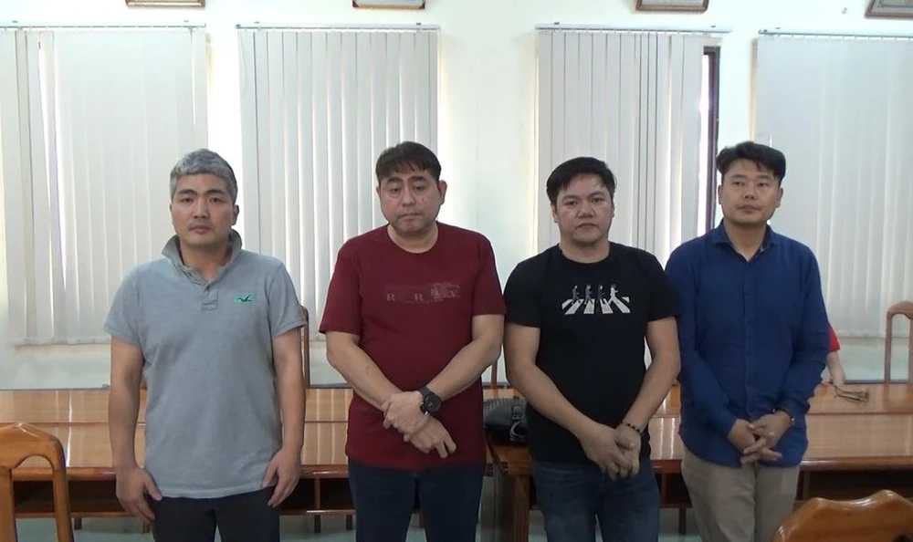 Nhóm người hiện đang bị cảnh sát tạm giữ để phục vụ công tác điều tra. Ảnh CA.
