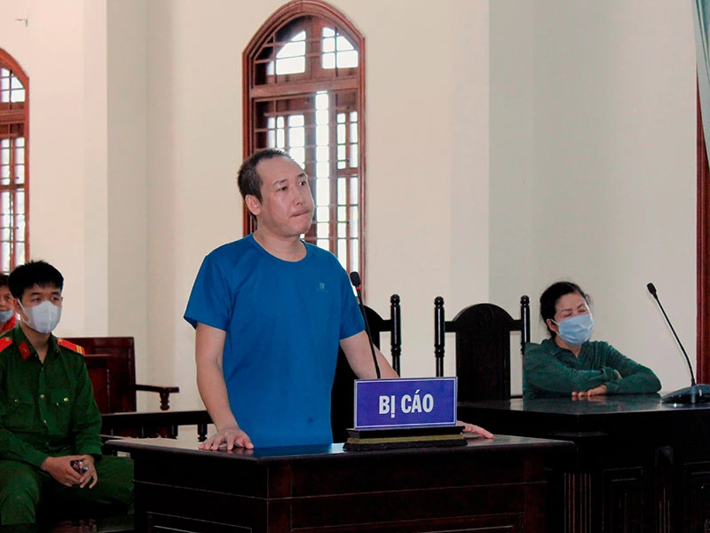 Bị cáo Trần Đức Minh tại tòa sơ thẩm ngày 12-4. Ảnh: NHẪN NAM