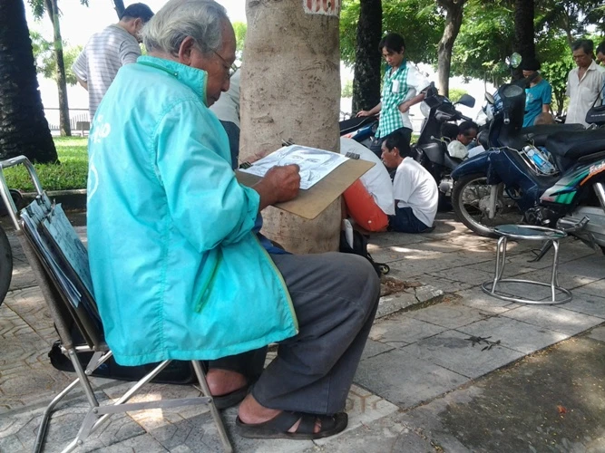 Tuổi xế chiều, đôi chân đã mỏi mệt nên hiện giờ ông chủ yếu hành nghề tại khu vực TP Biên Hòa, thỉnh thoảng mới chạy xe máy lên Sài Gòn vẽ cho khách tại các công viên...