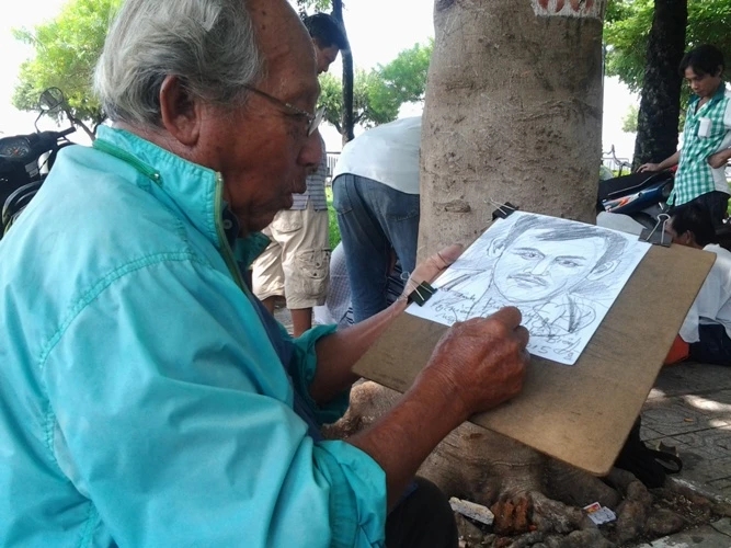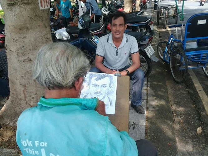 "Từ năm 20 tuổi tôi bắt đầu đi vẽ dạo, vừa có tiền phụ giúp gia đình, vừa thỏa niềm đam mê. Sau này, tôi dự tính mở một cửa hàng đàng hoàng để nhiều người biết, đồng thời có điều kiện để tiếp tục học nâng cao tay nghề nhưng không đủ tiền nên phải đành làm kiếp họa sĩ đường phố, ngồi vẽ tặng cho đời những nét của thời gian”, người họa sĩ già xúc động bày tỏ.