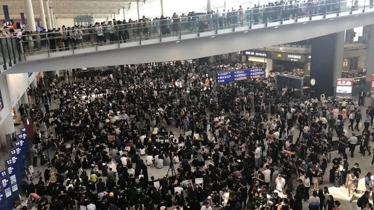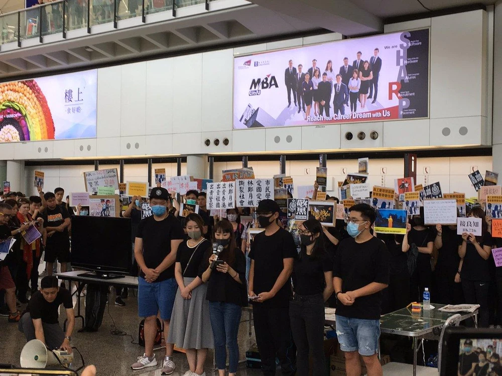 Hàng trăm người dân Hong Kong tập trung tại sân bay quốc tế phản đối luật dẫn độ. Ảnh: TWITTER