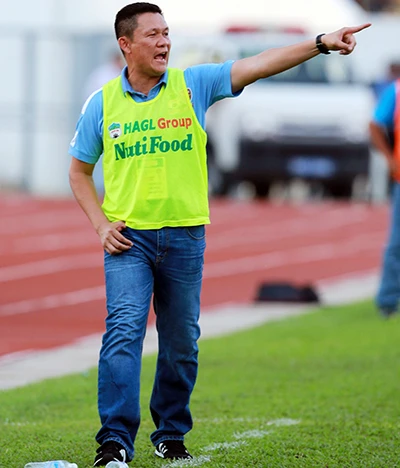 Người thế vai Nguyễn Quốc Tuấn chỉ đạo các cầu thủ HA Gia Lai vượt khó. Ảnh: XUÂN HUY