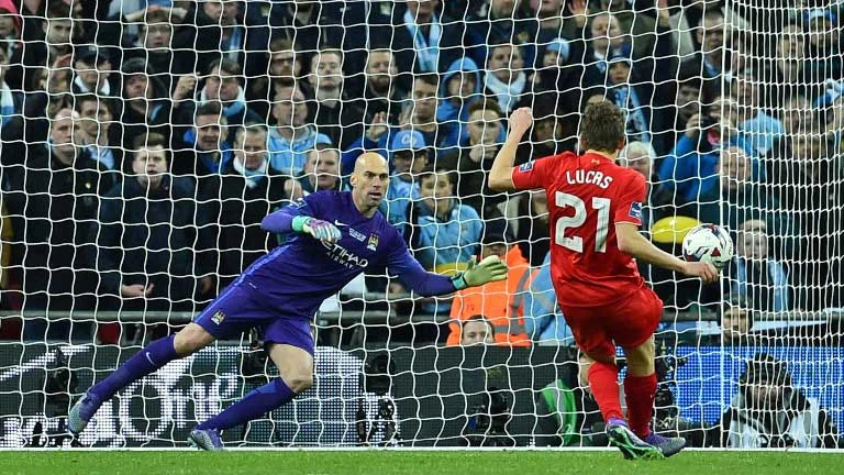 Thủ môn Caballero, người được xếp là thủ môn số 2 sau Jor Hart ở giải đấu này vào lĩnh án tiên phong. Thủ thành 34 tuổi, người Argentina là chuyên gia phá phạt đền. Quả là không ngoa khi anh đã vô hiệu ba cú sút của Lucas Leiva, Coutinho và Adam Lallana để đánh bại Liverpool 3-1 trong loạt… đấu súng.