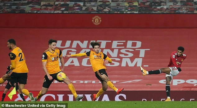 Phút 90+3, từ pha chuyền dài cực hay của Bruno Fernandes, Marcus Rashford bứt tốc thoát rồi dứt điểm chạm người hậu vệ Wolves khiến bóng đổi hướng vào lưới đem về 3 điểm cực kỳ quan trọng cho Manchester United.