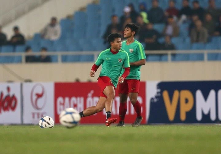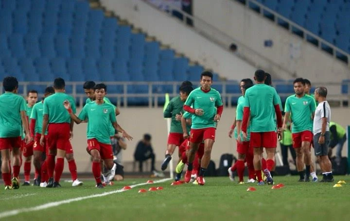 U-23 Indonesia khởi động trên sân Mỹ Đình.