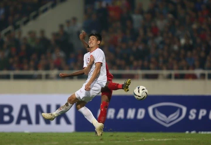 Đình Trọng vào sân gia cố hàng phòng ngự Việt Nam có phần chệch choạc.