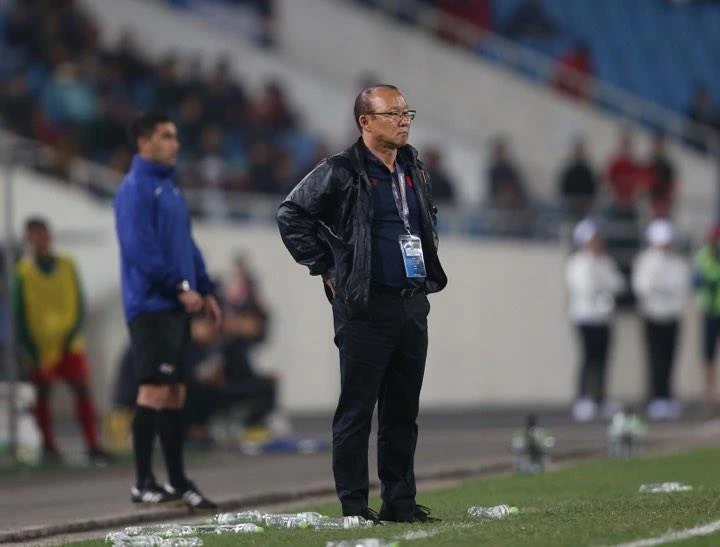 HLV Park Hang-seo lo lắng ngoài đường pitch.