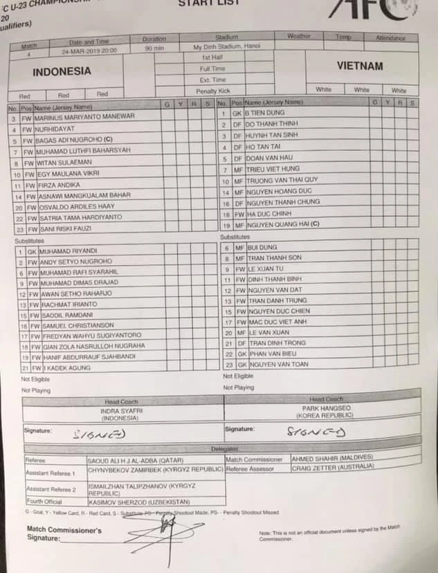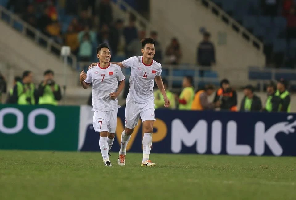 U-23 Việt Nam: Tiến Dũng, Tấn Sinh, Thành Chung, Văn Hậu, Thanh Thịnh, Thái Quý, Việt Hưng, Tấn Tài, Hoàng Đức, Quang Hải, Đức Chinh