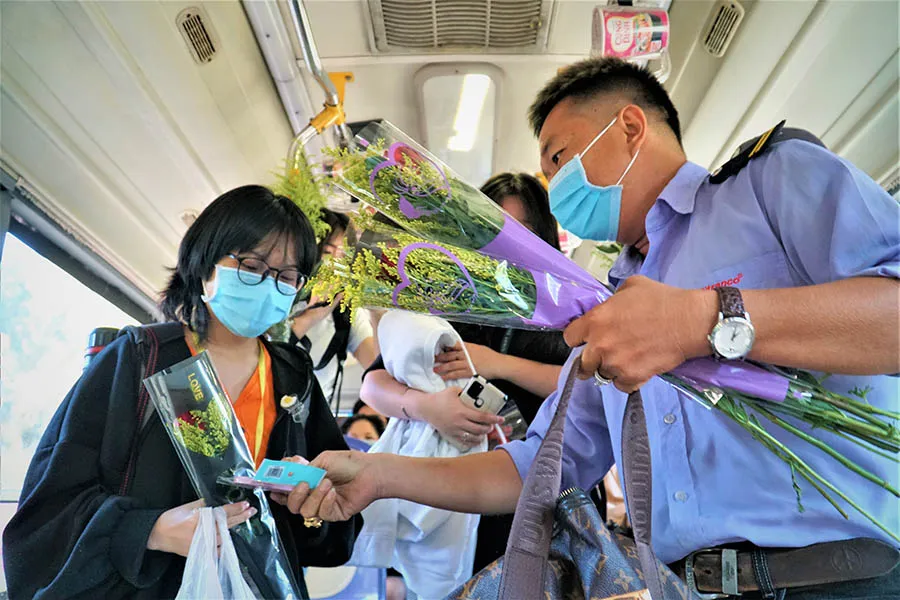 “Tuy món quà không lớn nhưng mỗi khi tặng, thấy khách bất ngờ và vui vẻ như vậy tôi cũng cảm thấy hạnh phúc theo. Việc tặng hoa và quà cho phụ nữ vào ngày 8-3 như một truyền thống, các công ty, cơ quan khác tặng được thì tôi nghĩ mình chạy xe buýt cũng tặng được, chủ yếu là mọi người ai cũng thấy vui” - anh Huy hào hứng.