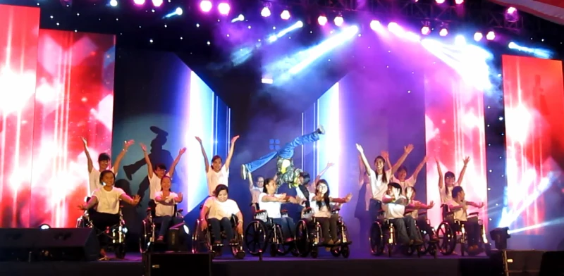 Tiết mục nhảy flashmob điêu luyện của nhóm nhảy DRD trong ngày hội Quốc tế Người khuyết tật.