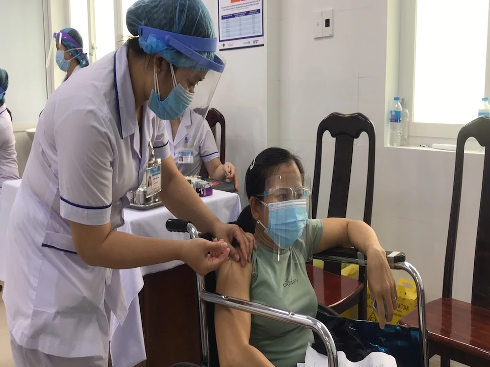 160 người khuyết tật ở Cần Thơ được tiêm vaccine phòng COVID-19 mũi 1. Ảnh: BVCC