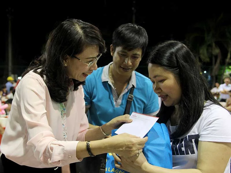 Bà Nguyễn Thị Thu, Phó Chủ tịch UBND TP.HCM, trong một lần đi thăm hỏi đời sống của công nhân. Ảnh: HOÀNG GIANG
