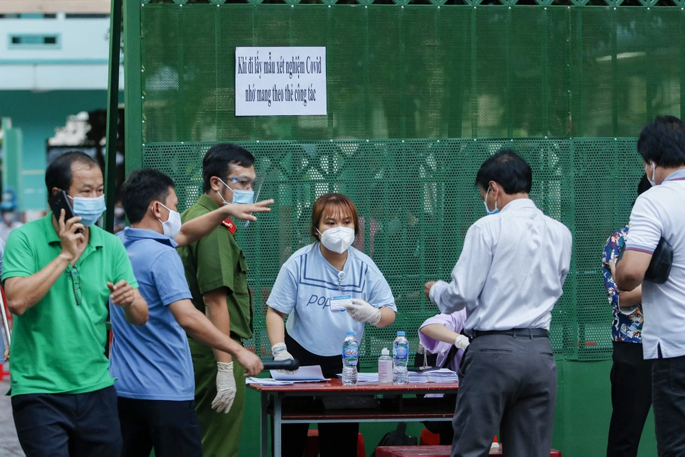 Đến chiều cùng ngày, nhiều người lao động đã có mặt tại các điểm xét nghiệm để trình thẻ ngành, thẻ công ty, giấy tờ chứng nhận công việc cho cơ quan chức năng. Tại đây, có nhiều trường hợp người lao động cư ngụ ngoài địa bàn quận Gò Vấp cũng đến đây để mong muốn được xét nghiệm, tuy nhiên, lực lượng chức năng chỉ giải quyết đối với người lao động trên địa bàn quận Gò Vấp.