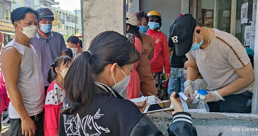 Người dân đến khai báo y tế tại Trạm y tế lưu động phường 7, quận Gò Vấp. Ảnh: VÕ HÀ