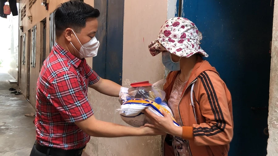 Các thành viên trong Ban Tương tế tỏa đi quận 12, động viên, chia sẻ khó khăn trong đợt bùng phát dịch COVID-19 lần thứ tư. Ảnh: P.ĐIỀN