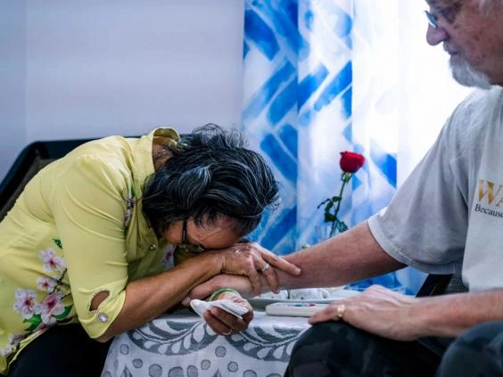 Bà trở nên xúc động hơn khi hai người ngồi xuống tham gia cuộc phỏng vấn. Cựu lính không quân với mái tóc bạc trắng đặt tay lên ghế của người bạn gái cũ như để an ủi bà. Rất gần mà sao vẫn quá xa.
