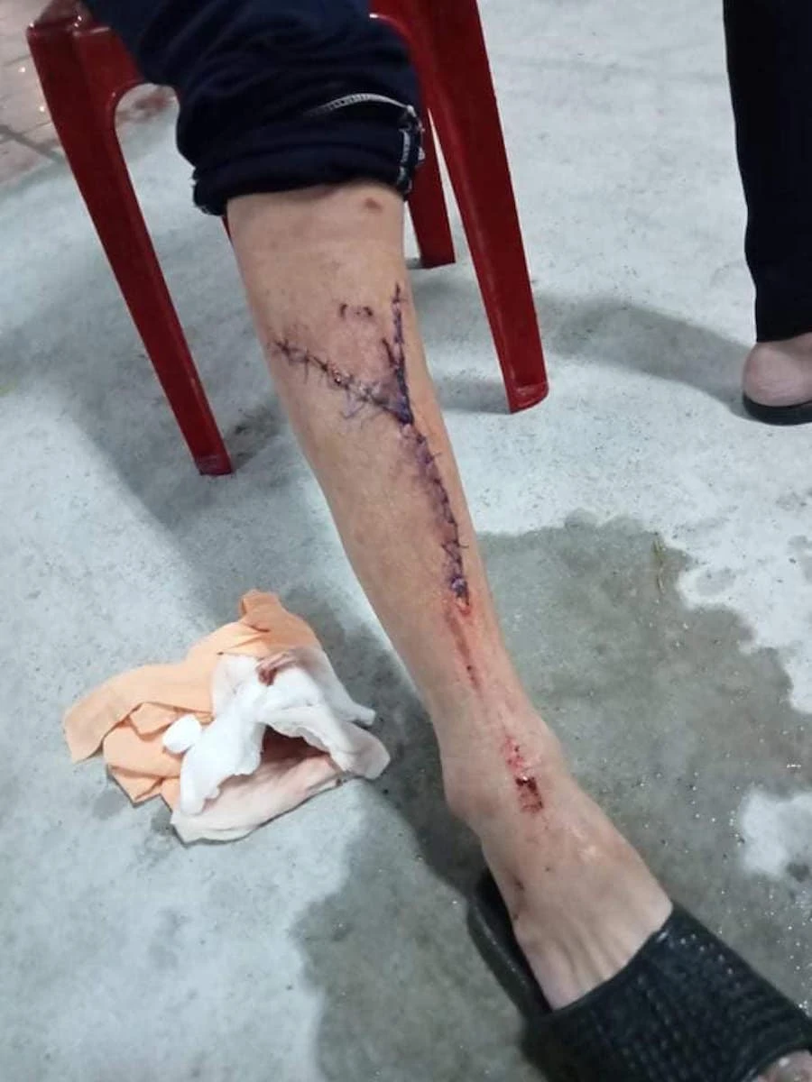 Anh Lê Mạnh Hùng (quê Tuyên Hoá, Quảng Bình) khi di chuyển cùng vợ và 1 bé trai bằng xe máy từ ra đến Nha Trang thì bị va quẹt phải khâu hơn 20 mũi. Khi đến Đà Nẵng sức kiệt không thể tiếp tục lái xe và được các tình nguyện viên giúp đỡ. Ảnh: VƯƠNG TRẦN.