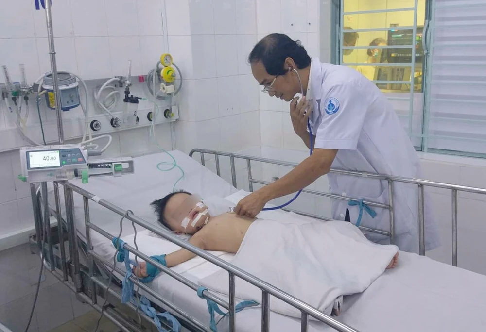 Một bệnh nhi bị tay chân miệng nặng đã qua cơn nguy kịch tại BV Nhi đồng 1. Ảnh: HL