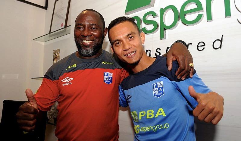 Faiz Subri và HLV Jacksen Tiago của Penang.