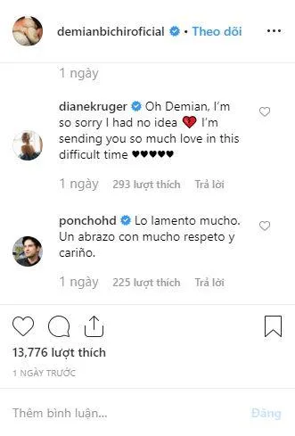 Những lời chia buồn từ đồng nghiệp, bạn bè của Demián Bichir trên Instagram