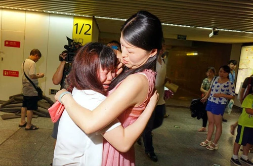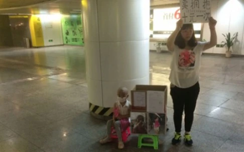 Hôm 25, 26-7 người ta nhìn thấy cô Trần Được Quyên, 28 tuổi đứng bên ngoài ga tàu điện ngầm cùng đứa con gái 4 tuổi Nana cầm tấm biển với dòng chữ: “Bán ôm mỗi lần 10 tệ”.