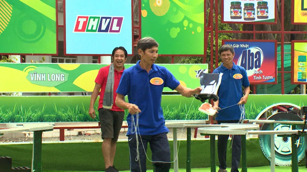 Ngược lại, anh Hà là người hỗ trợ cho chị Hằng tuy không quen tay ở lượt chơi đầu nhưng càng về sau những chú dê cũng được anh lần lượt dẫn vào chuồng một cách nhanh chóng.