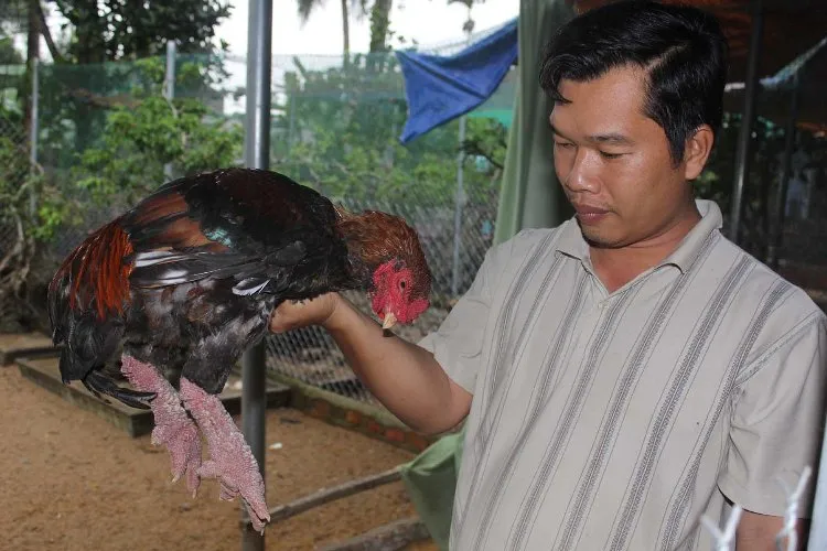 Anh Bốn chăm chút bầy gà Đông Tảo để bán trong dịp tết Bính Thân sắp tới.