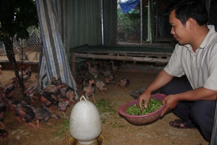 Trang trại chăn nuôi của anh Bốn nằm ở thôn Hổ Tiếu, sát bên trục đường TP Quảng Ngãi - Nghĩa Phú. Trong tháng cuối năm này, gia đình anh bận rộn lo nuôi thúc đàn gà, bầy chim để đáp ứng nhu cầu cho khách gần xa.