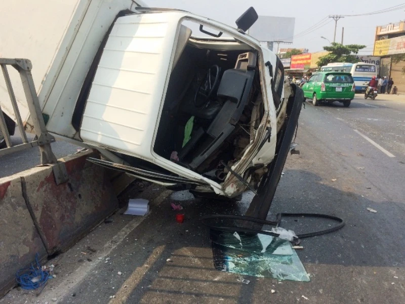 Khi chạy đến trước nhà 810 quốc lộ 13 (phường Hiệp Bình Phước, quận Thủ Đức, TP.HCM) thì xe buýt số 616 chạy tuyến 23-9 - KDL Đại Nam do tài xế Nguyễn Quốc Bình điều khiển chở theo khoảng 30 hành khách chạy cùng chiều ở phía sau tăng tốc vượt lên, va chạm với xe tải nói trên.