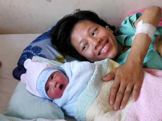 Mẹ con Hạnh tại khoa sản sau một ngày sinh.