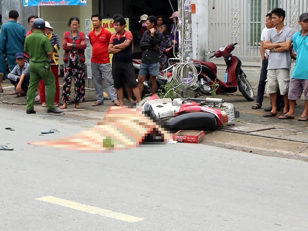 Khi qua địa bàn phường Thạnh Xuân (quận 12, TP.HCM), chị A đi sát lề đường nhưng vẫn bị va chạm với xe tải biển số Bình Dương lưu thông cùng chiều. Người mẹ một con này ngã ra đường và bị bánh xe cán tử vong tại chỗ.