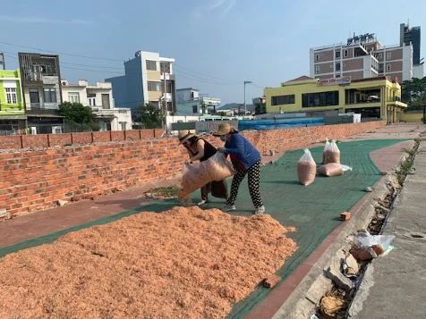 Tép tươi vãi lên tấm lưới thông thoáng bốn hướng vừa nắng vừa gió rất nhanh khô. Chỉ một nắng trên biển là tép đã úa khô, chuyển qua màu hồng gạch, phơi thêm một nắng nữa là tép đã khô rang, vỏ tép tươi còn bóng hồng lên dưới nắng.