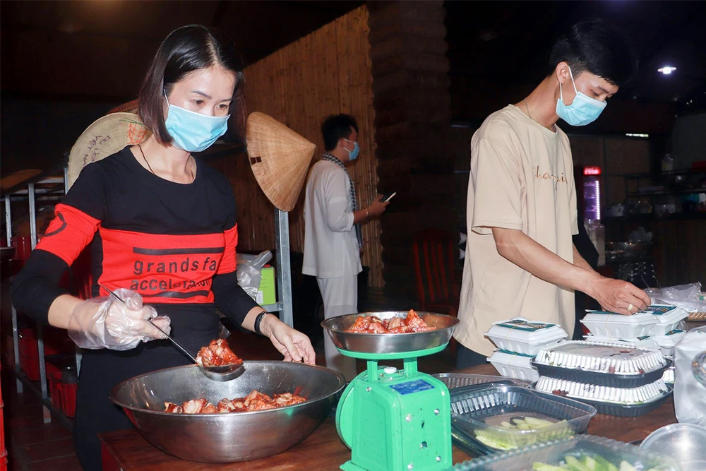 Từ khi các điểm kiểm soát lập nên, nhận thấy công việc tại các chốt khá vất vả, cần được hỗ trợ về thức ăn, thức uống nên doanh nghiệp cũng tiếp một phần sức để cùng chính quyền địa phương chống dịch. Rồi cứ vậy, mỗi ngày ba buổi, sáng trưa thì cơm phần, tối thì thức ăn nhanh, các nhân viên của quán cùng nhau chế biến và trao đến tận tay các tình nguyện viên đang làm việc ở các điểm kiểm soát.