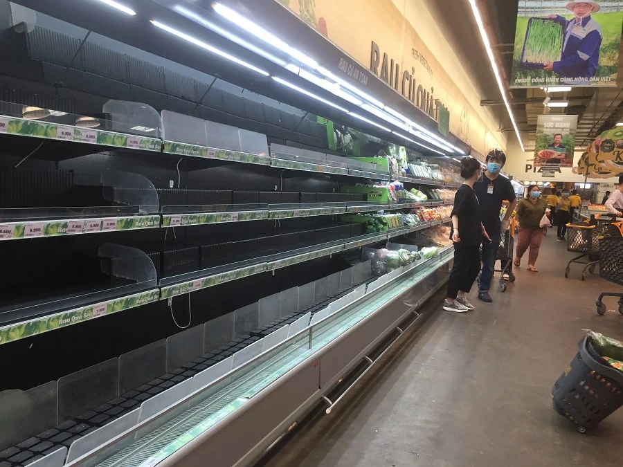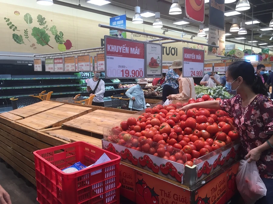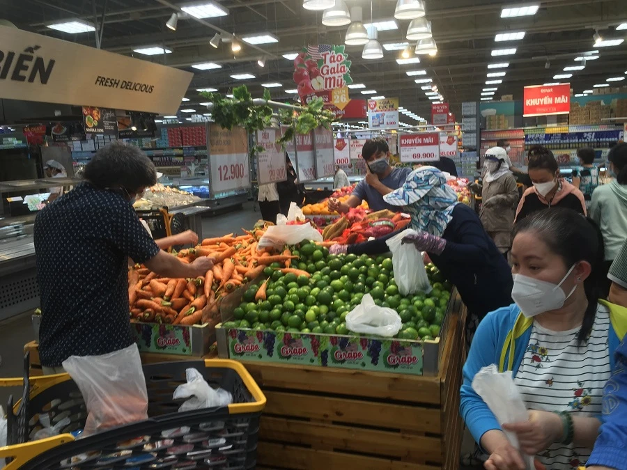 Ghi nhận ngày 22-8 tại các siêu thị, cửa hàng tiện lợi, tiệm thuốc tây…vẫn có nhiều người dân đi mua hàng rau quả, gạo...nhưng không còn tình trạng xếp hàng rồng rắn như hai ngày hôm trước đây.